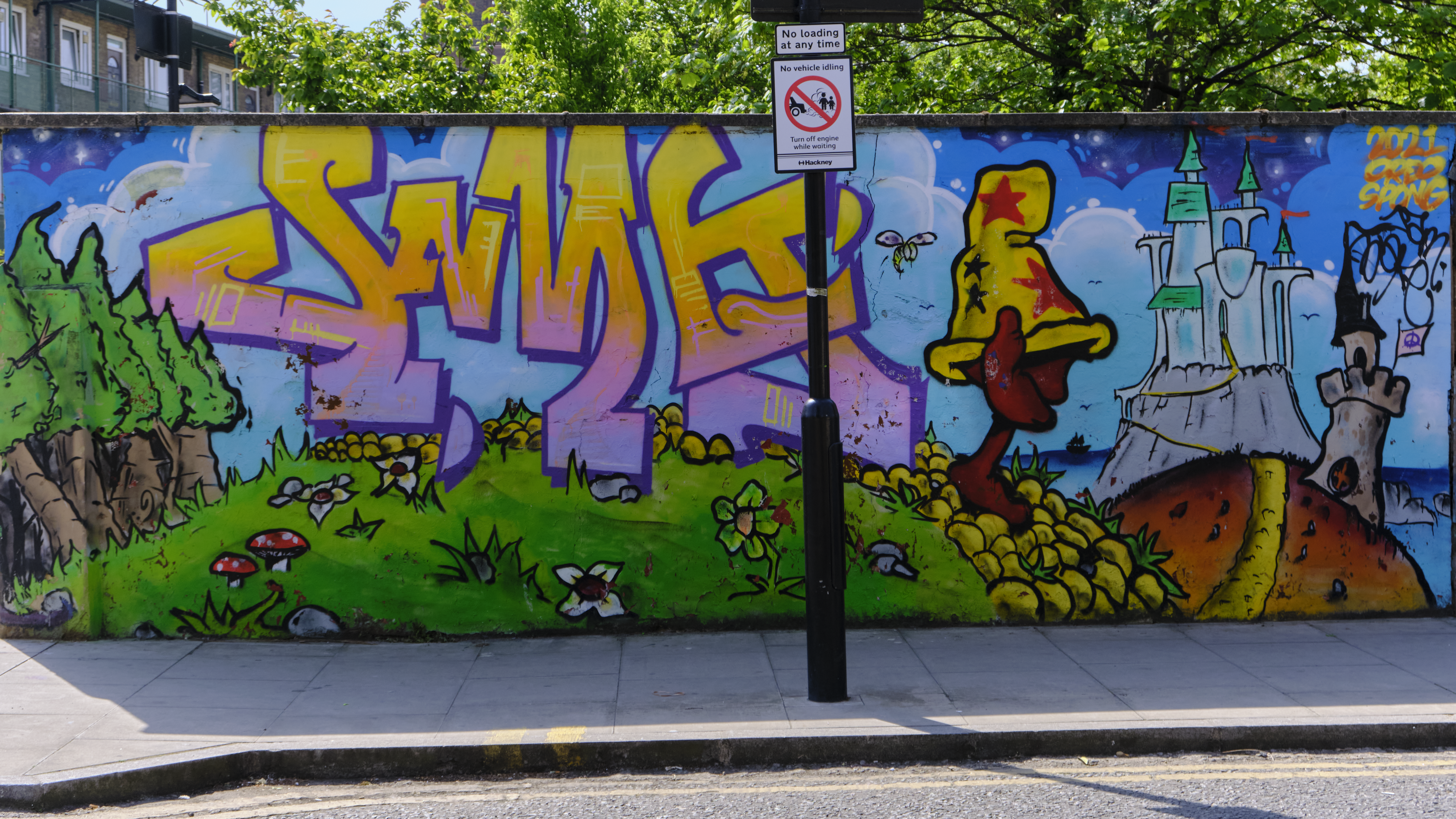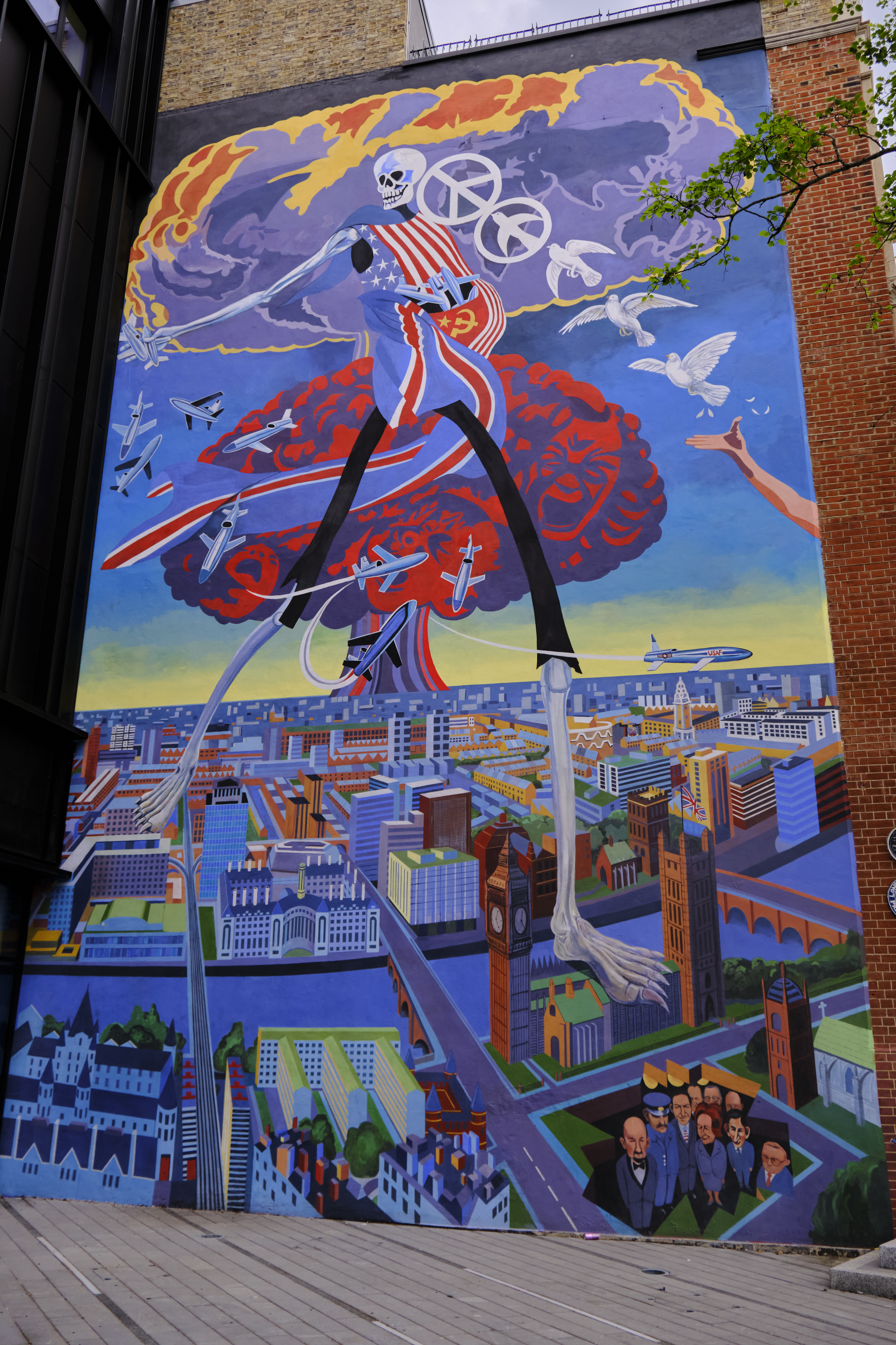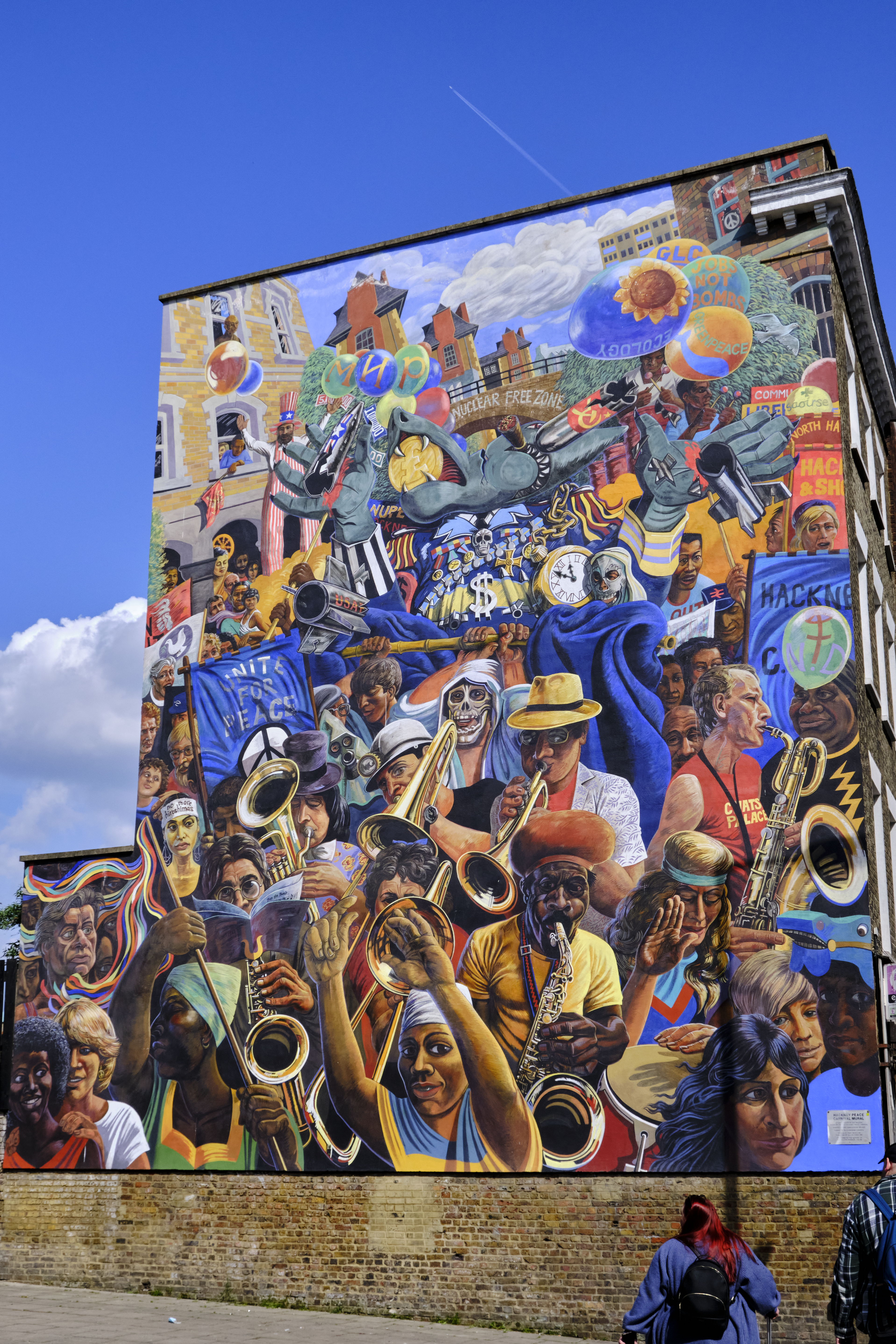 Also referred as the “Hackney Peace Carnival Mural”. Painted in 1985 by Ray Walker, based on the 1983 Hackney Peace Carnival. Quite possibly my favourite piece of art ever.