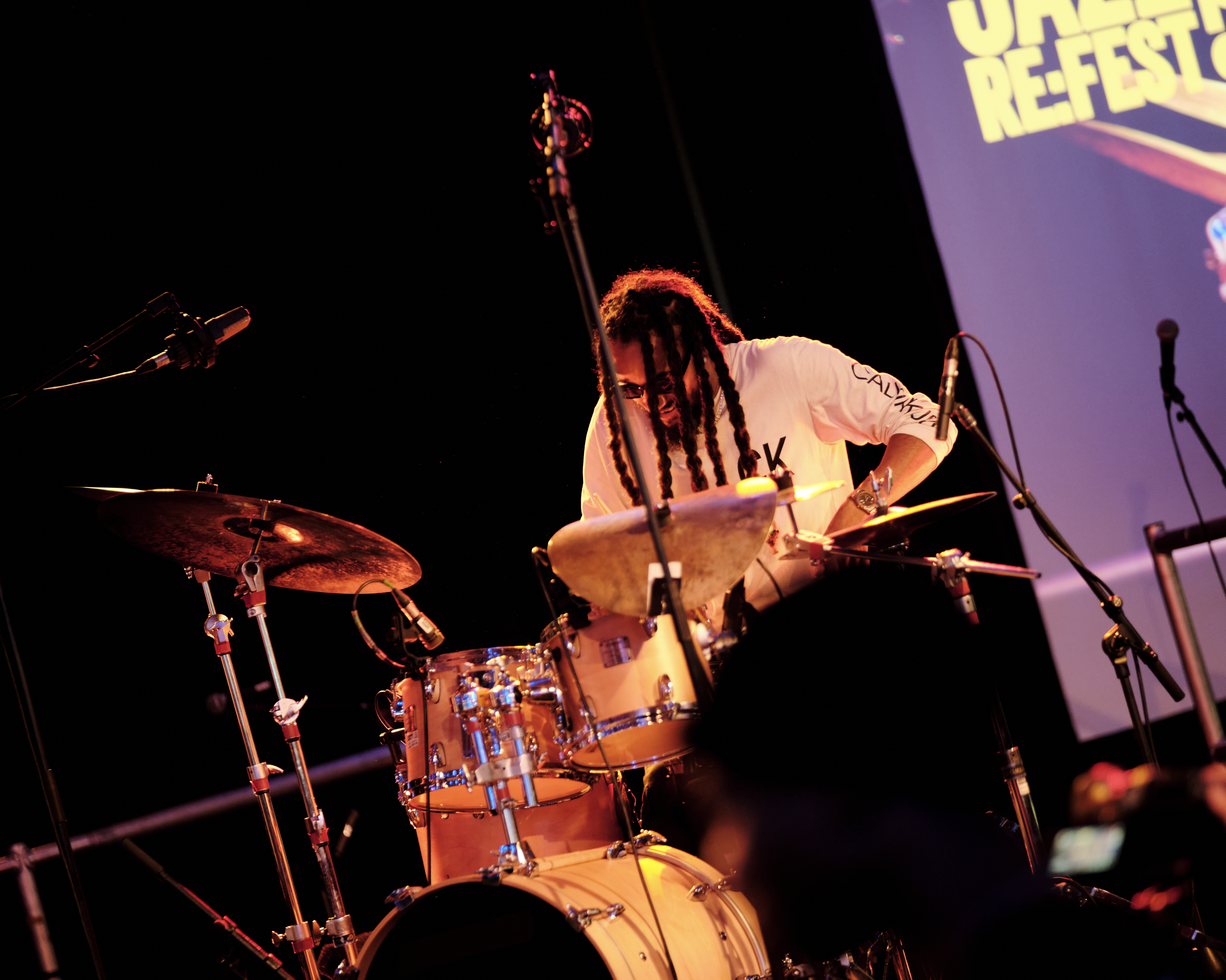 Next up on the stage at The Clore Ballroom in the wonderful South Bank Centre was Drummer Jas Kayser.